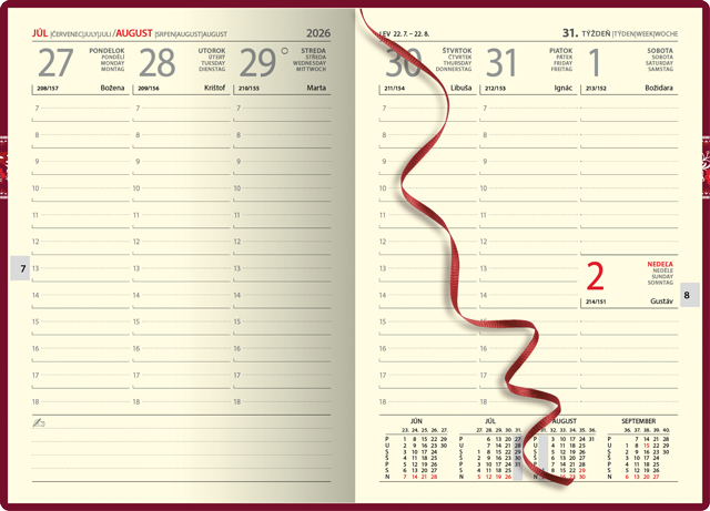 Kniha "Týždenný diár A5 FOLK modrý 2026" stručný popis: Obľúbený týždenný diár má oderuvzdorný povrch s motívom folklórnej stuhy. Efektná razba fóliou a 3D lak vytvárajú dokonalý dizajn. Jediný svojho druhu na trhu. Hmotnosť produktu:0.3 kg